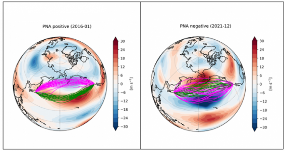 을 보였다. 특히 북태평양과 북미 대륙의 대기순환 변동을 설명하는 기후 패턴인 PNA는 도쿄-LA 항로의 겨울철 월평균 왕복 비행시간 차이에 약 60% 기여하는 요인이라는 점이 확인됐다. PNA 위상에 따라 가장 ... ...