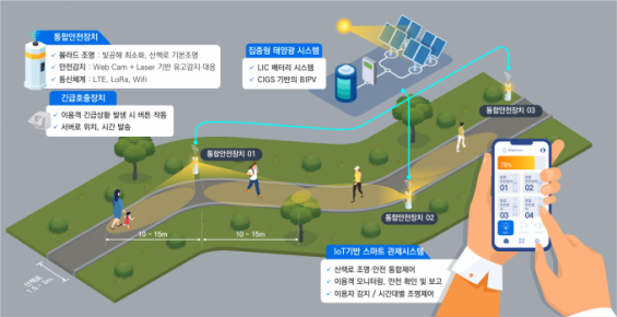 - 연구팀이 개발한 신규 구축된 스마트 조명 시스템은 단순히 산책로에 조명을 설치하는 수준을 넘어서 다양한 지능형 안전관리 기술이 통합된 것이 특징이다. 먼저 레이저 센서를 통해 보행자를 감지해 조명을 제어하고 AI 영상분석으로 이용자 사고 상황 판단, 사고 발생 시 즉시 관제센터에 알림을 ... ...